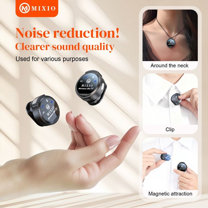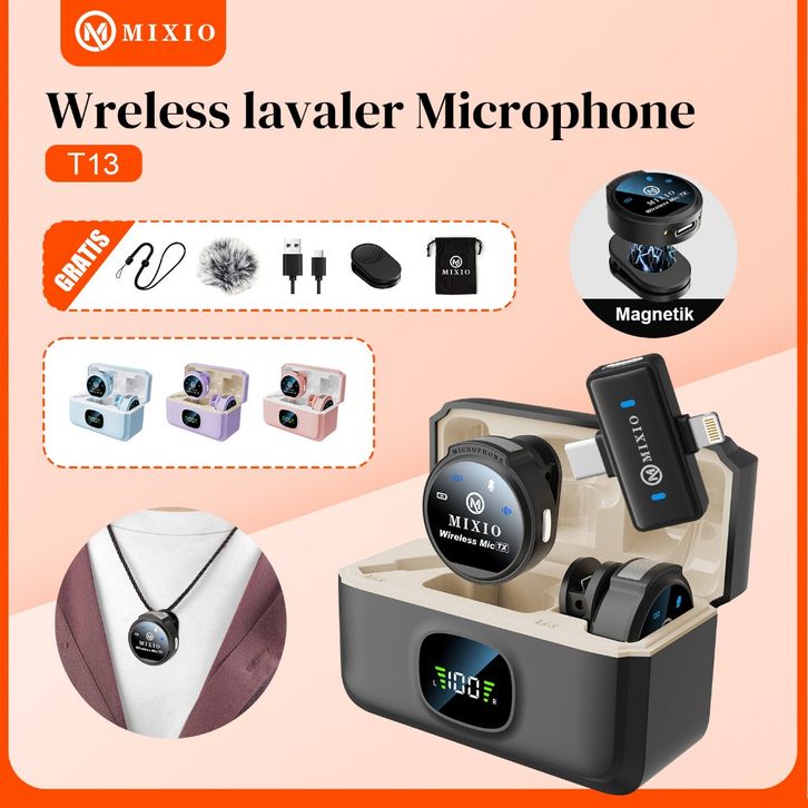 MICROPHONE MAGNETIC WIRELESS MIXIO 2 IN 1 CLIP ON MIC MAGNETIC MIKROFON HP PLUG PLAY DUAL LAVALIER ORIGINAL TERLARIS