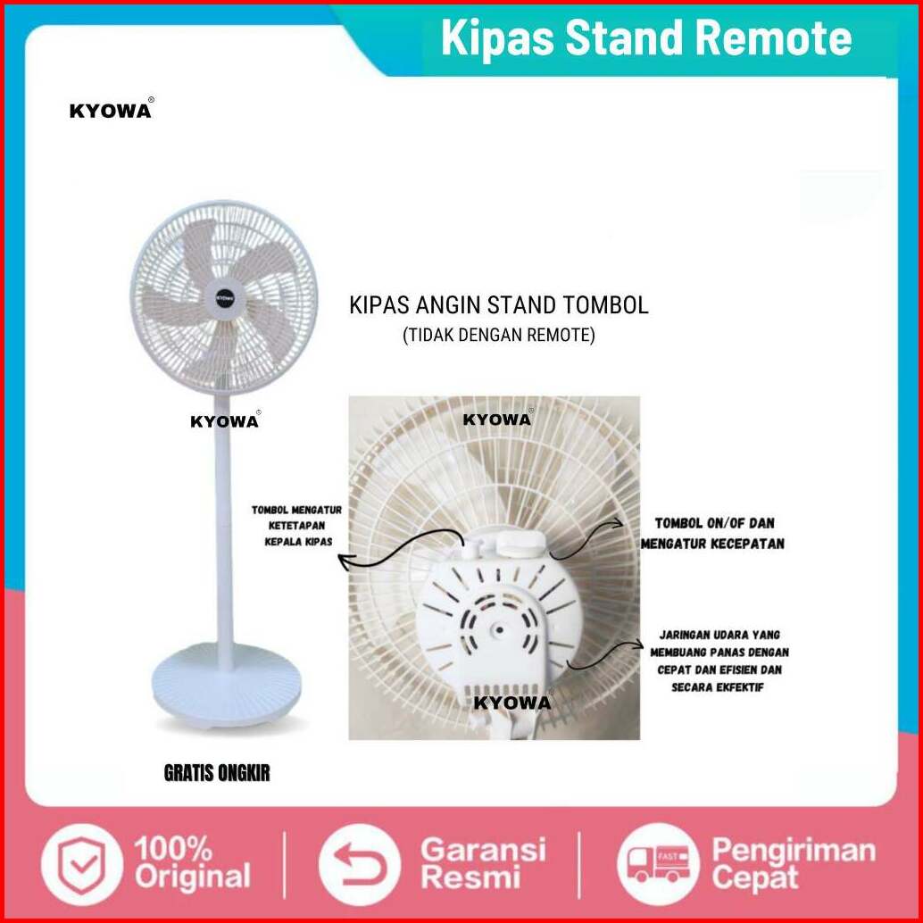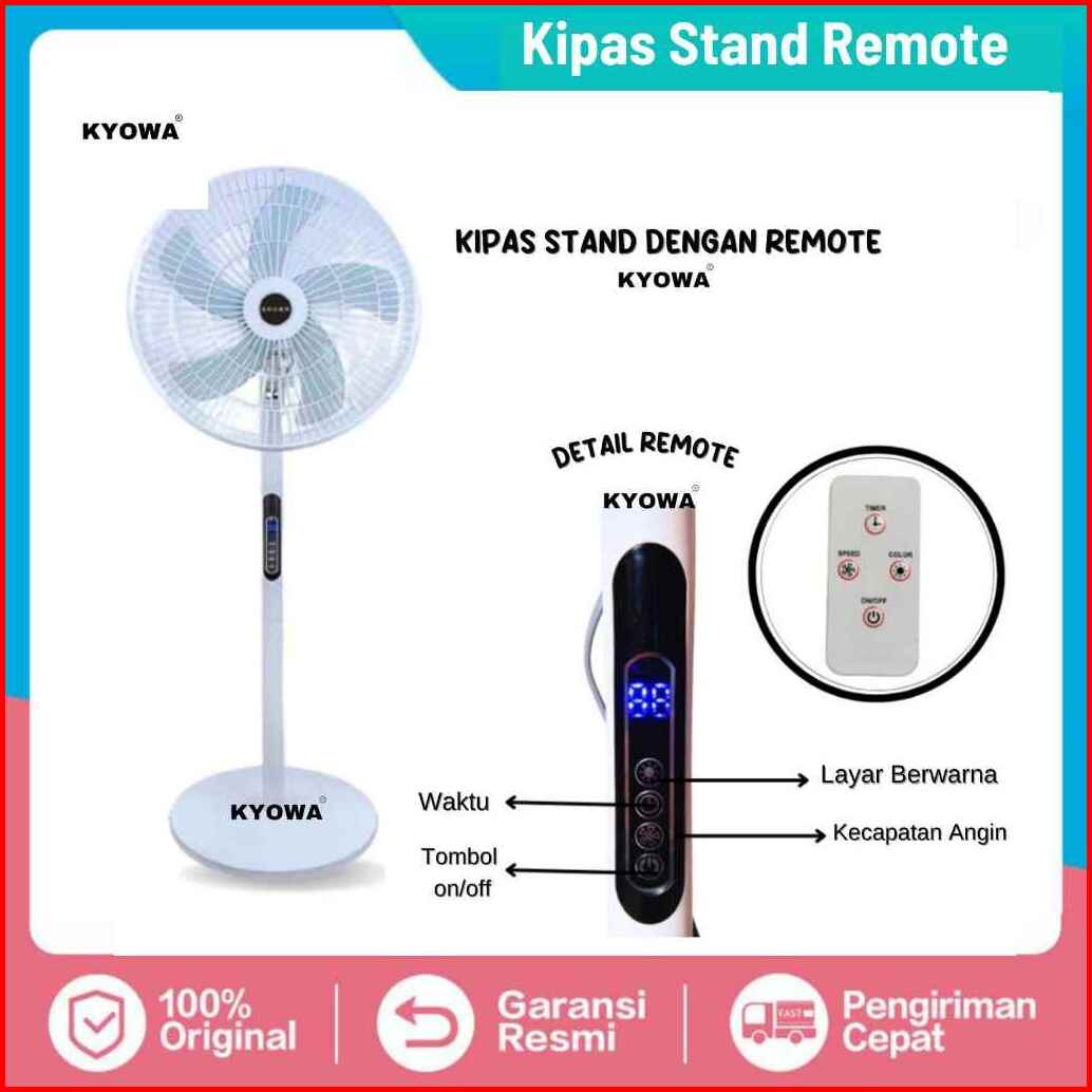 Kipas Angin Standing Kyowa Kw-1608a Kipas Berdiri Dengan Tutup 5 Baling Baling Kipas Remote Desain Modern