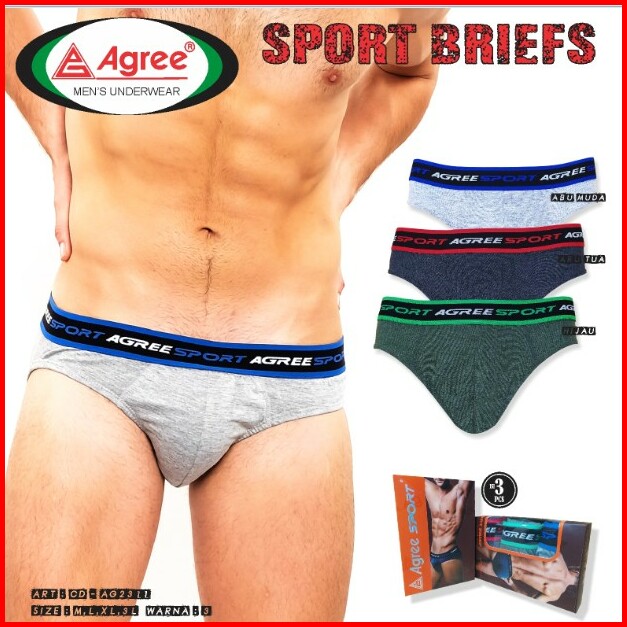 Agree - Isi 3 Pcs Celana Dalam Pria Polos Karet Luar Nyaman 2311