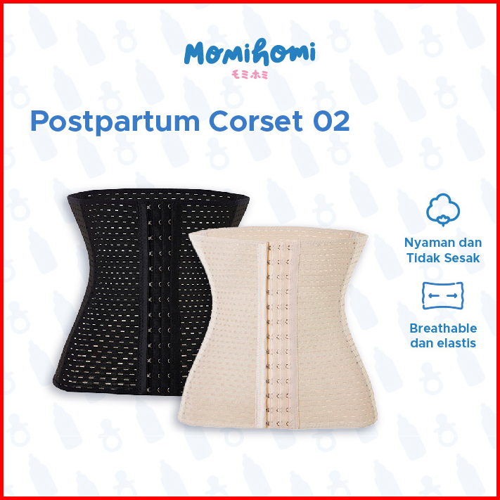 Momi Homi 02 Garansi Tukar Size Breathable Corset Pinggang Korset Pelangsing Perut Wanita Stagen Pasca Melahirkan Body S