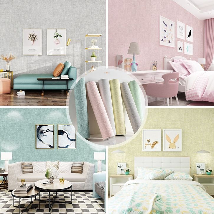 TERLARIS 50CM*280CM Wallpaper Stiker Dinding 3D Polos Walpaper Linen Roll Dekorasi Kamar Pria Wall Kamar Tidur
