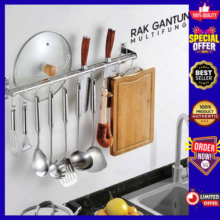 [Star]gantungan rak dapur pisau panci stainless/Kitchen bar 60cm 80cm 100cm single double