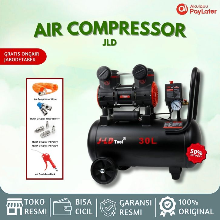 JLD 30L Mesin Kompresor Angin Listrik 8bar Kompresor Angin Tanpa Oli 1100W Air Compressor Kompresor