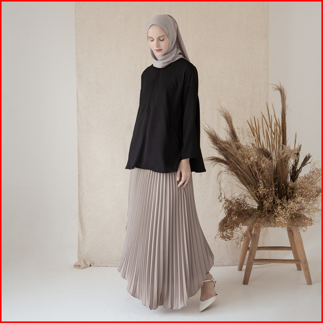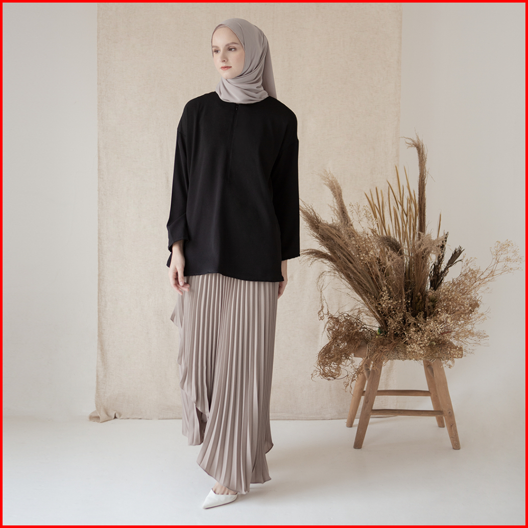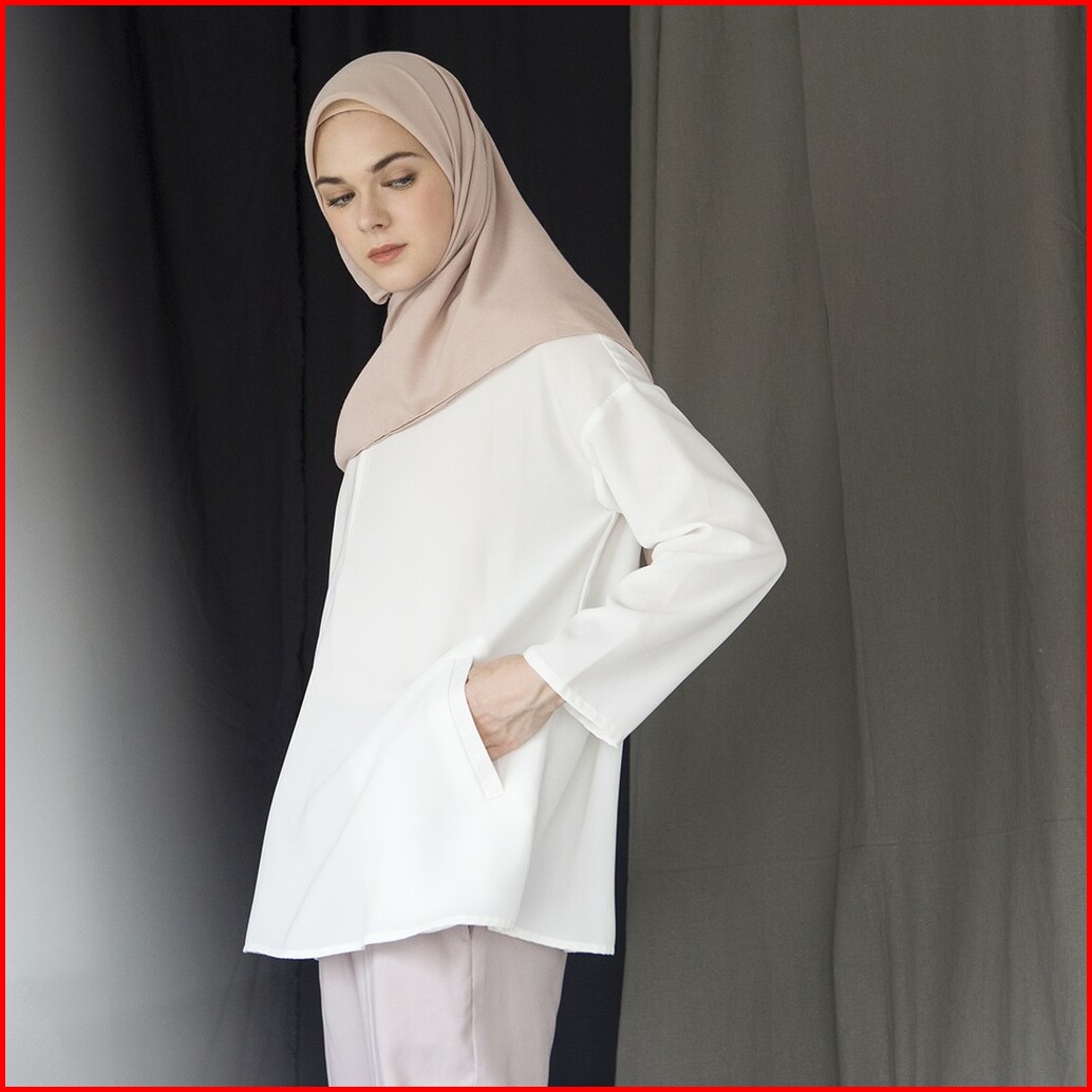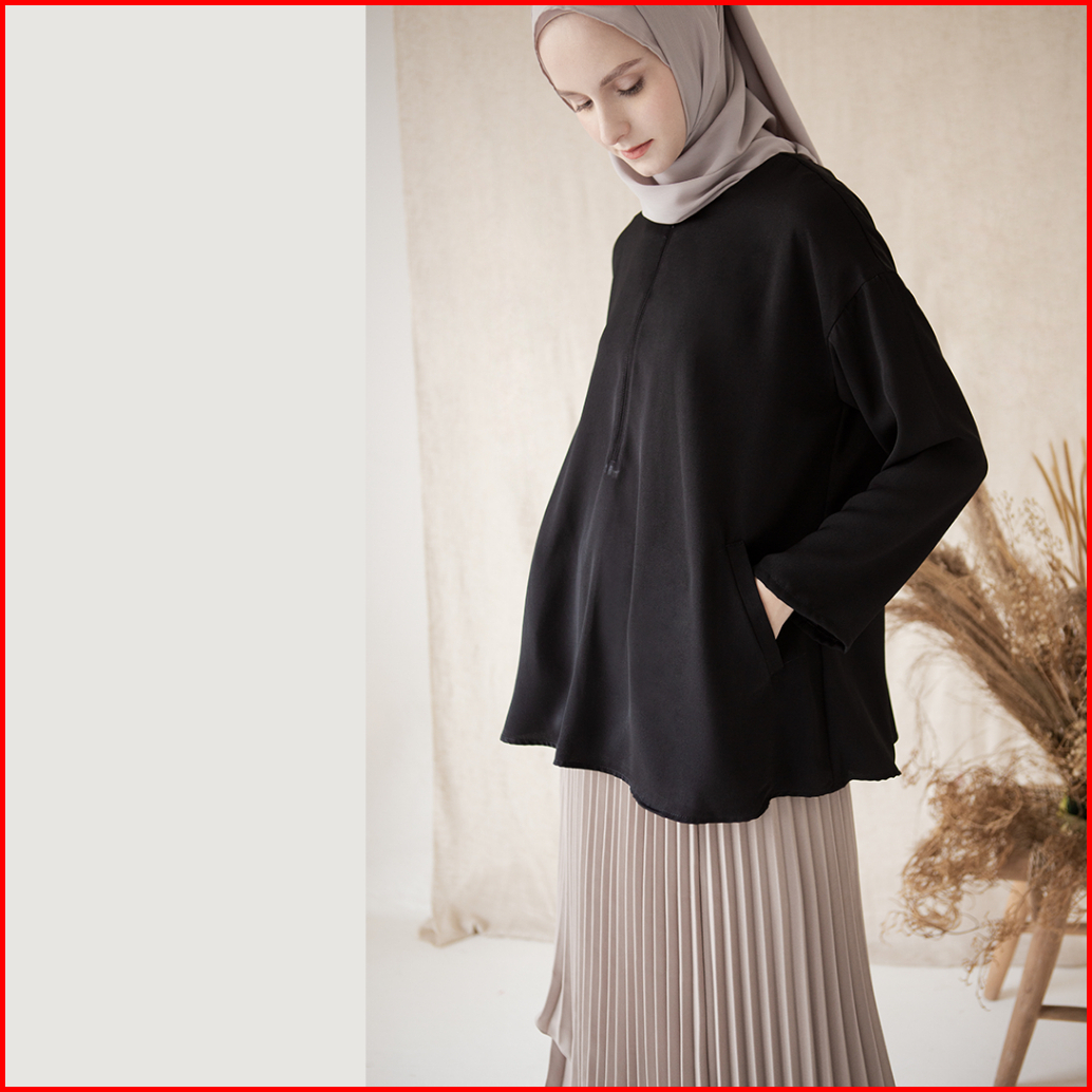 Basic Top By Aska Label - Basic Blouse Kantor Lengan Panjang Busui Friendly Warna Putih Navy