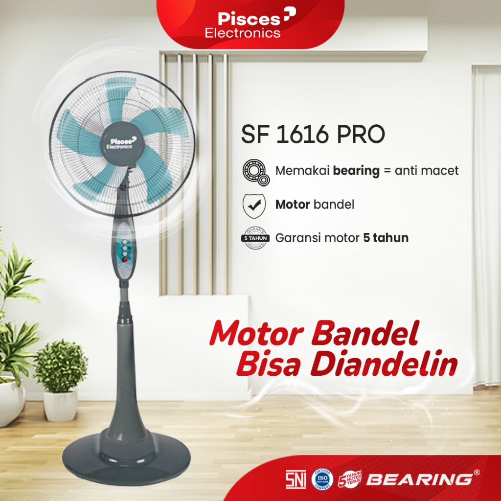 KIPAS ANGIN BERDIRI STAND FAN 16" DENGAN PEMBERAT 1616 PRO DENGAN TEKNOLOGI BEARING AND THERMOFUSE