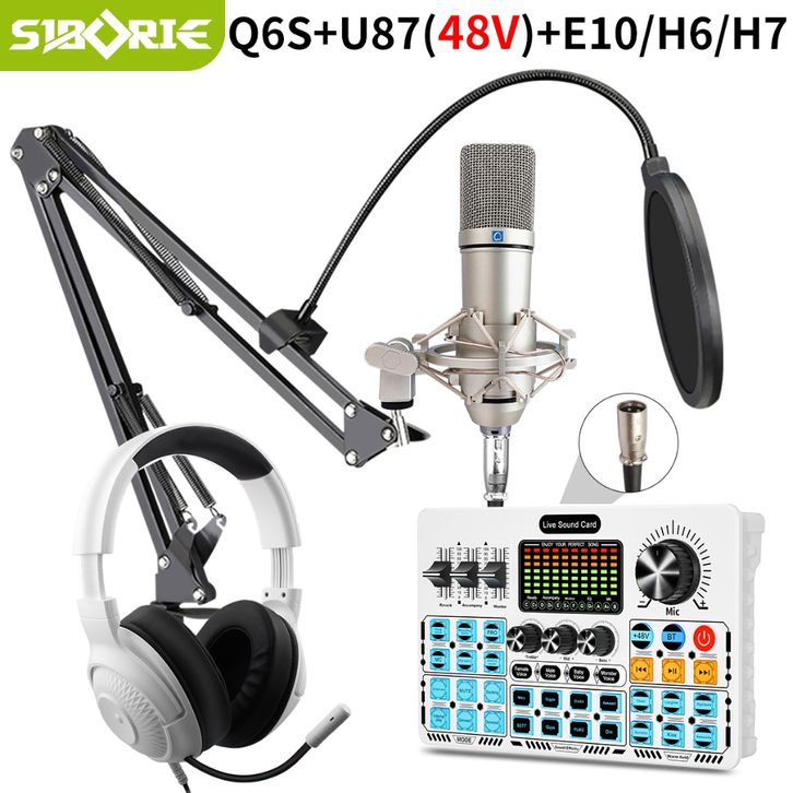 Siborie【48V Set】Q6S+U87(48V)+E10/H6/H7 paket lengkap soundcard headset mic 3 in 1 set full Peralatan Streaming Langsung