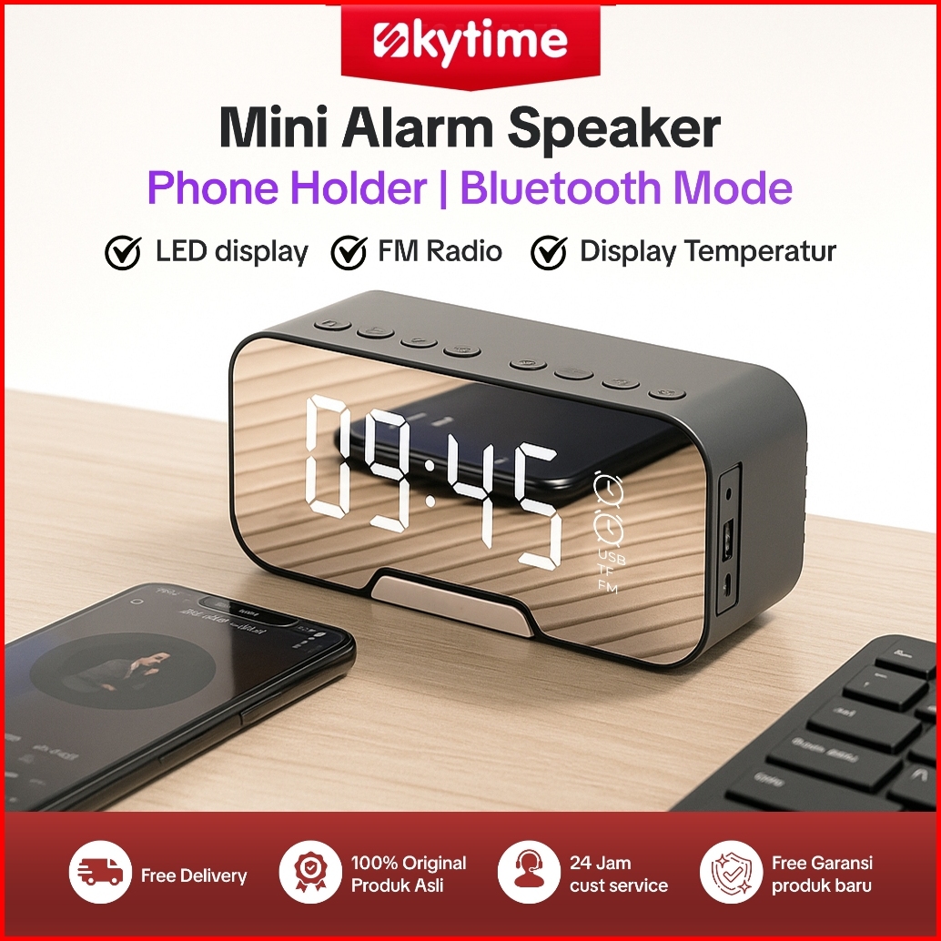 Skytime S10 Speaker Bluetooth Jam Led Display Alarm Fm Radio Wireless Clock Smart Speaker