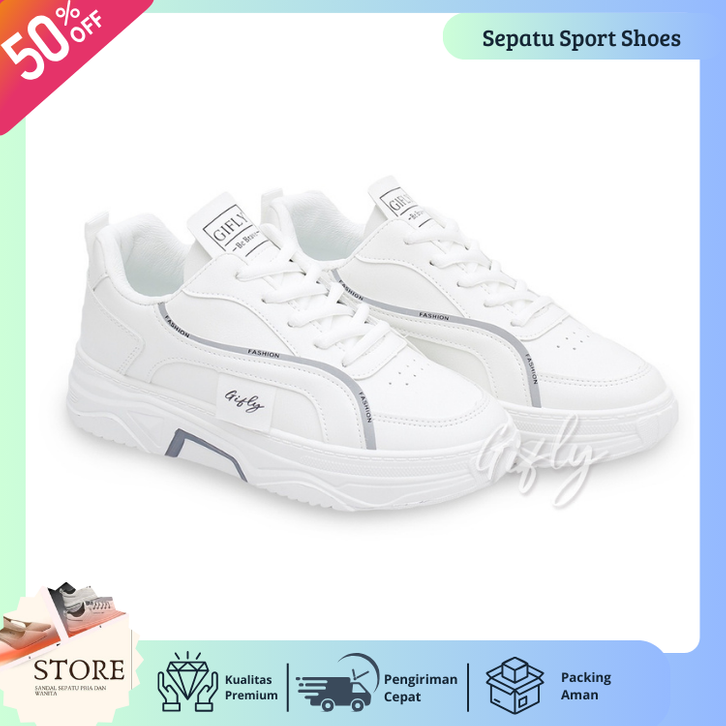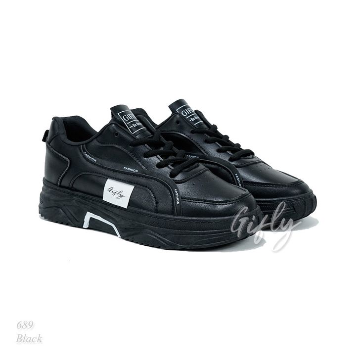 GIFLY Delian Sepatu Sneakers Wanita Kets Putih Hitam Sport Shoes White Black 689 ORIGINAL TERLARIS