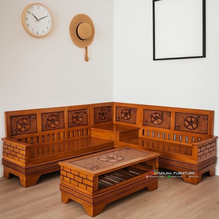 kursi ruang tamu Kursi sudut piramid kayu jati / kursi sudut Jepara full kayu kursi kayu jati Best Seller dan Terlaris