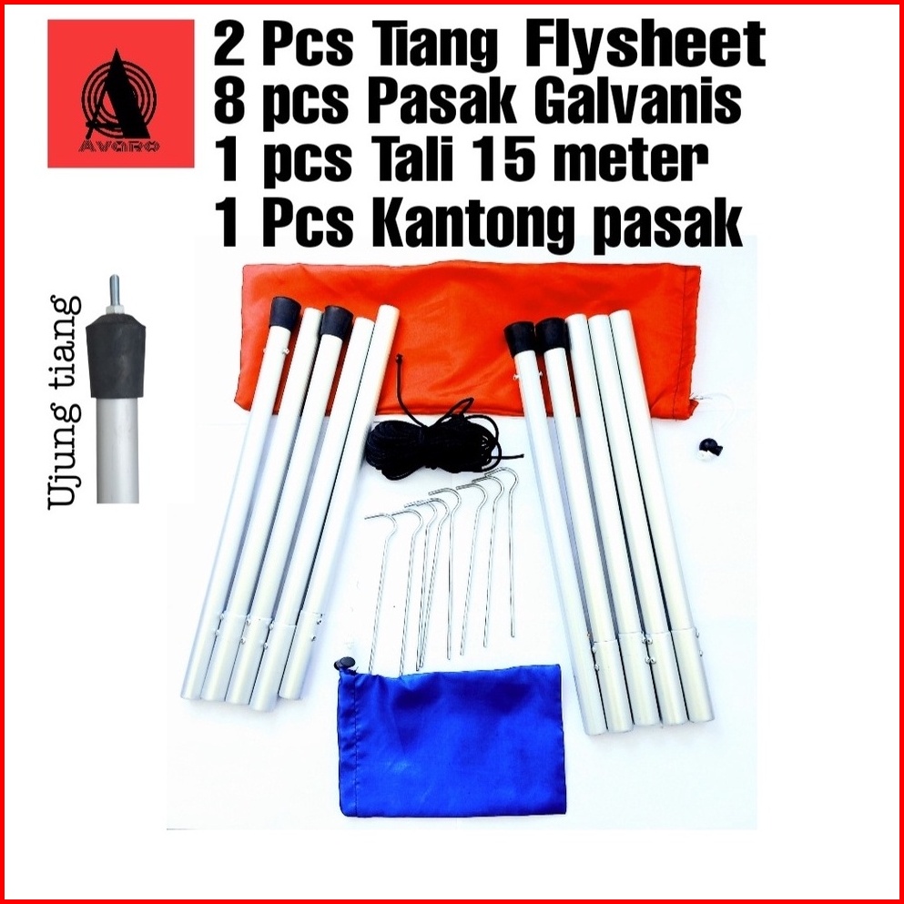2 Pcs Tiang Flysheet Tiang Tenda Tarptent Pasak Tali