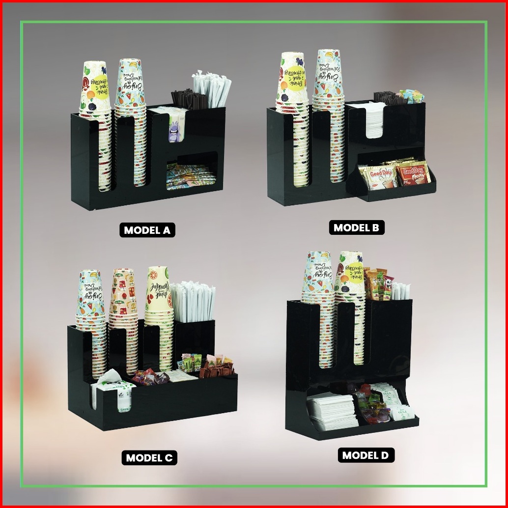 Rak Akrilik Paper Cup Sederhana Complete Model C
