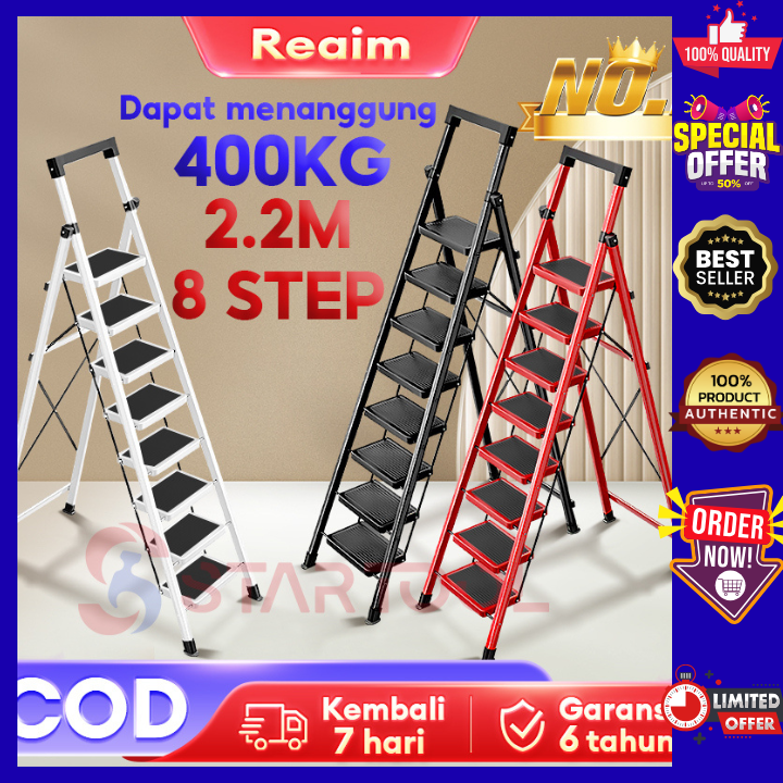 [Star]Tangga lipat alumunium / Tangga Lipat Aluminium Portabel 1.2/1.5/1.8/2.1Meter Kokoh Tebal Kuat Hitam