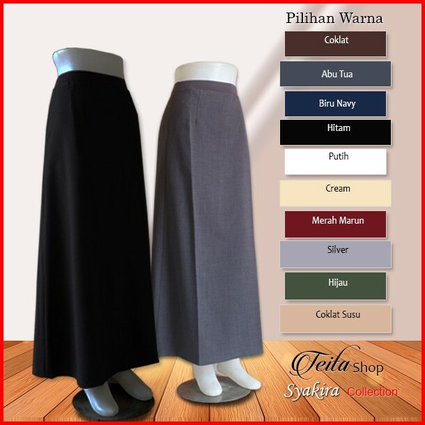 Rok Kerja Panjang Rok Kerja Wanita Pinggang Karet Model A-line Muslimah Syar I Formal Kuliah