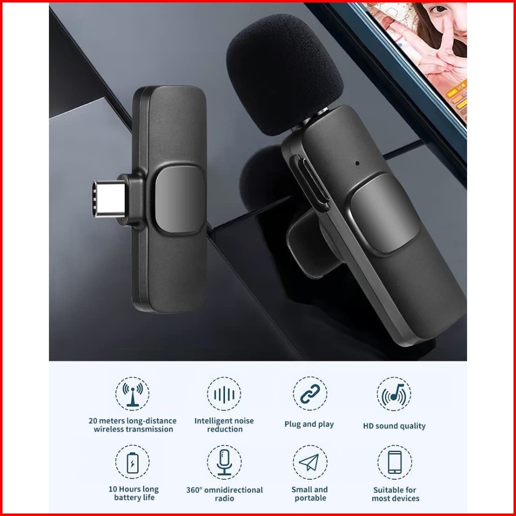 Mikrofon Wireless Lavalier Microphone Usb Type C 2.4ghz 2 In 1 2in1 Mikrofon Nirkabel Lavalier Mic Portabel Audio Video