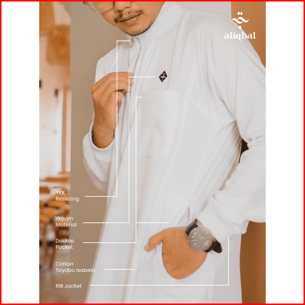 Aliqbal Gamis Pria Jubah Dewasa Zipper Rib Ekslusif Faruq Series