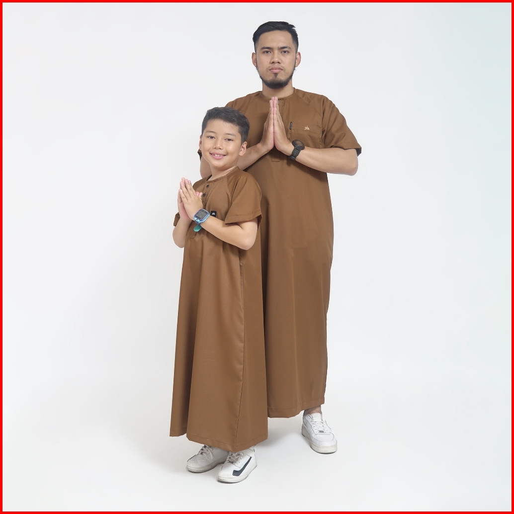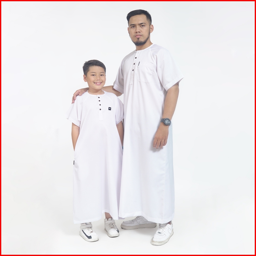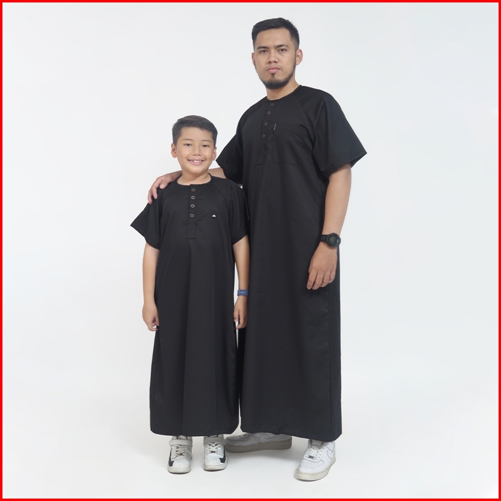 Khoirummah Jubah Musa Couple Gamis Anak Laki Laki Jubah Dewasa Polos Lengan Pendek Black