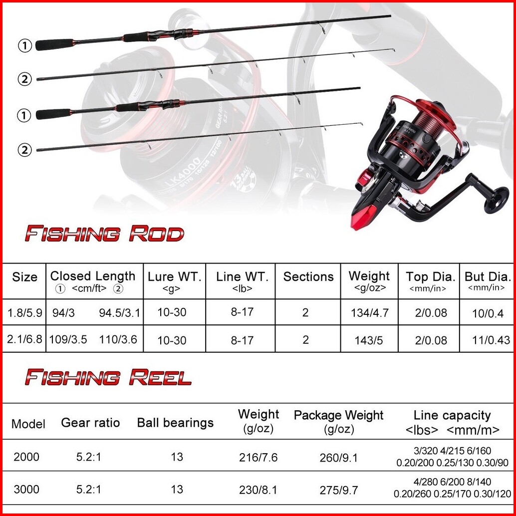 Joran Pancing 1.8m 2.1m 2 Bagian Pancing Reel 2000 3000 4000 5000 6000 7000 Joran Spining Reel Pancing Pancing Set Panci