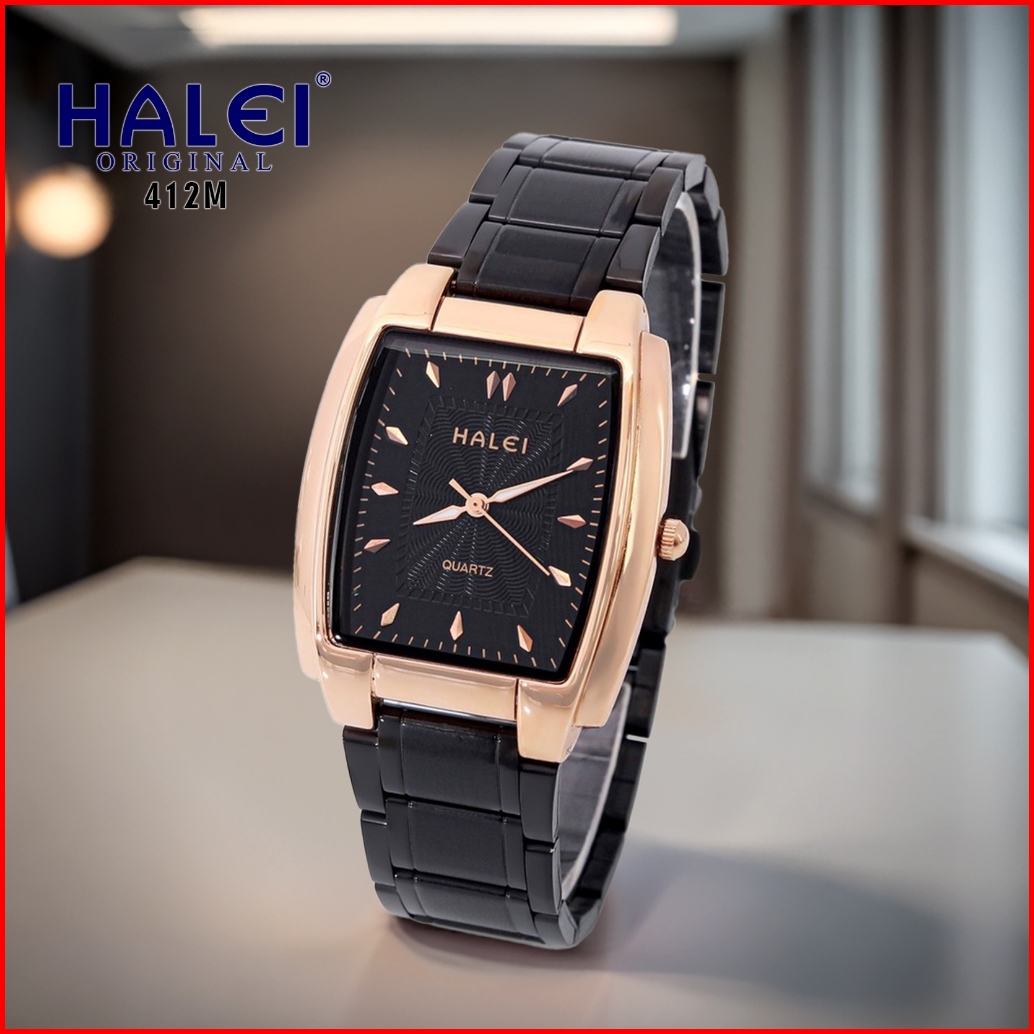 Halei 412 M Jam Tangan Pria Halei Original Fashion Anti Air Rantai Stainless Back Analog Kekinian