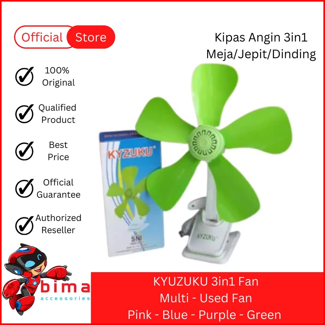 Kipas Angin Mini 3 In 1 Sni Meja Jepit Dinding Kyzuku Ky-520 29watt 5 Baling-baling