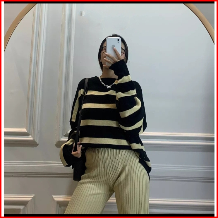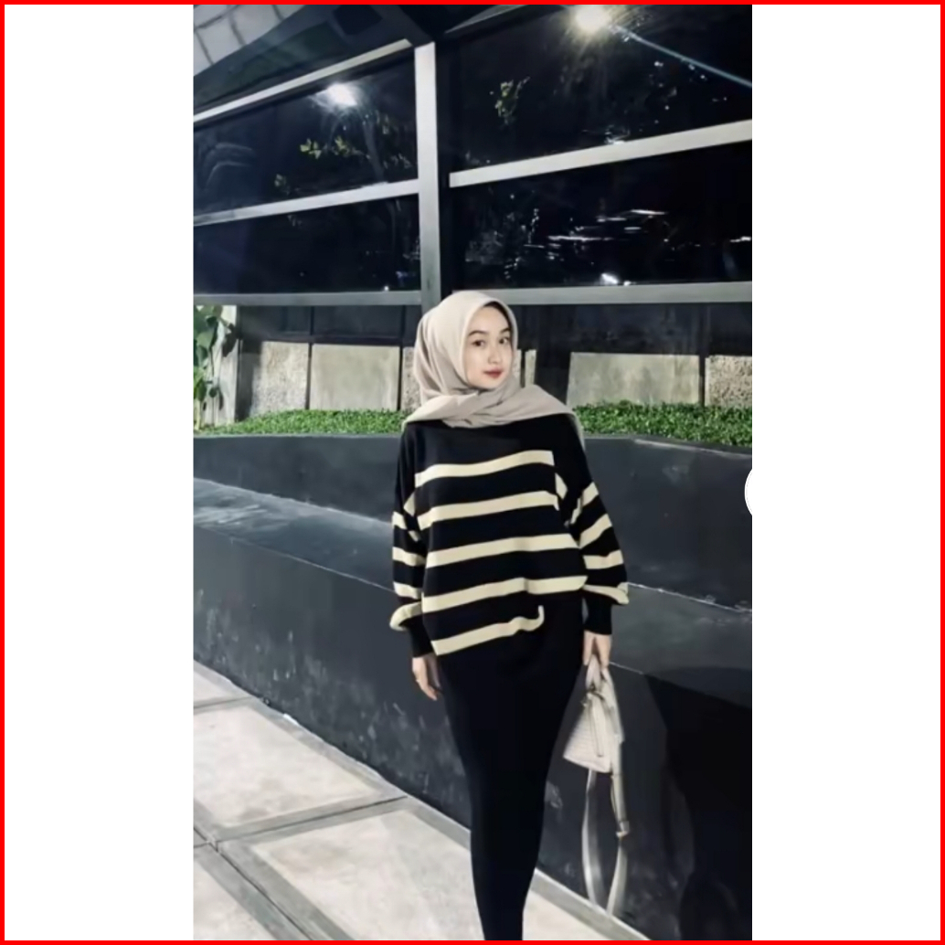 Maudy Sweater Rajut Garis Knit Korean Style Premium Size Jumbo Bb 40-80kg