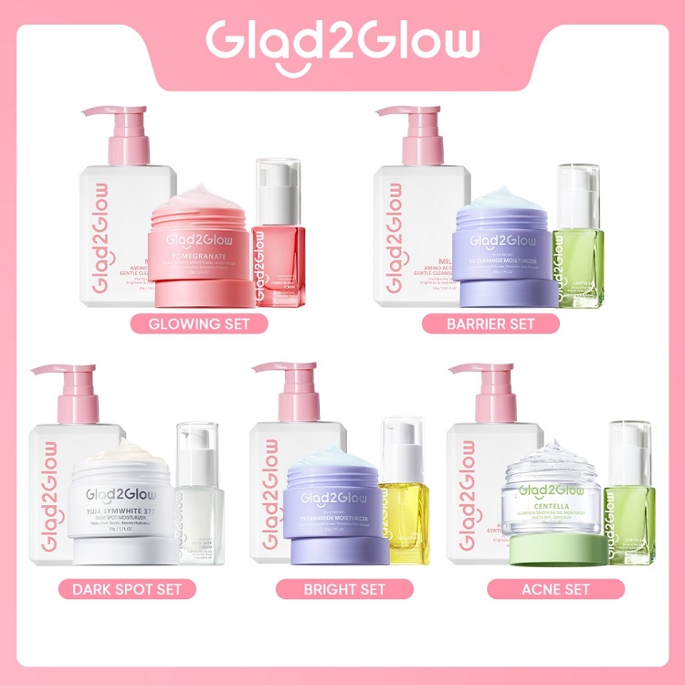Glad2Glow SPECIAL BUNDLE 3in1 3pcs Paket Skincare Moisturizer Serum Face Wash GLOWING KIT Dark Spot ACNE KIT