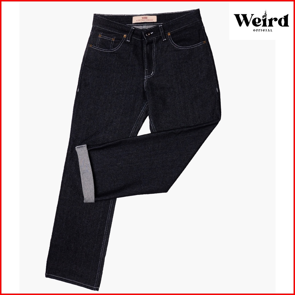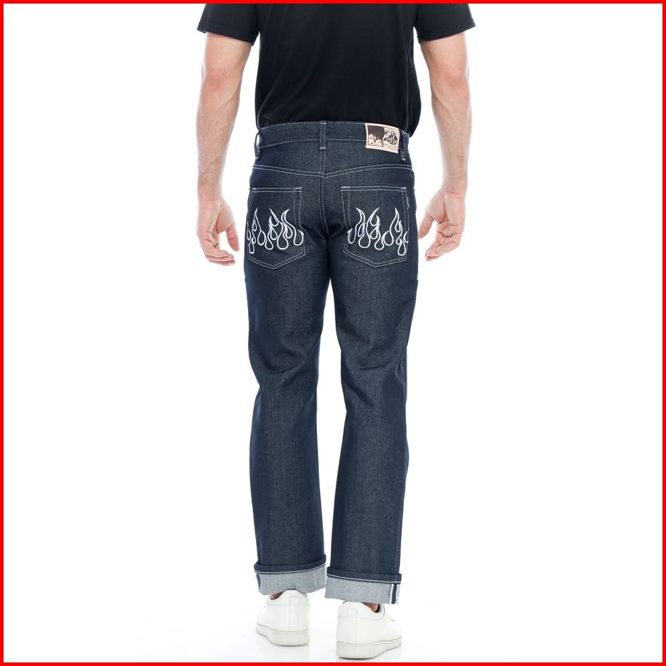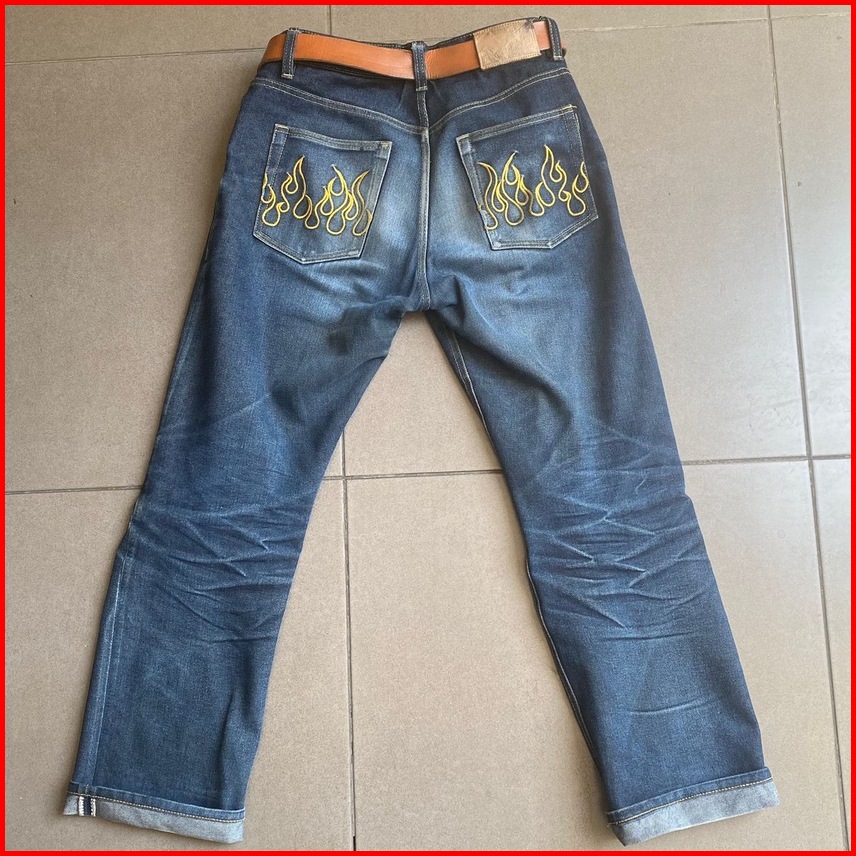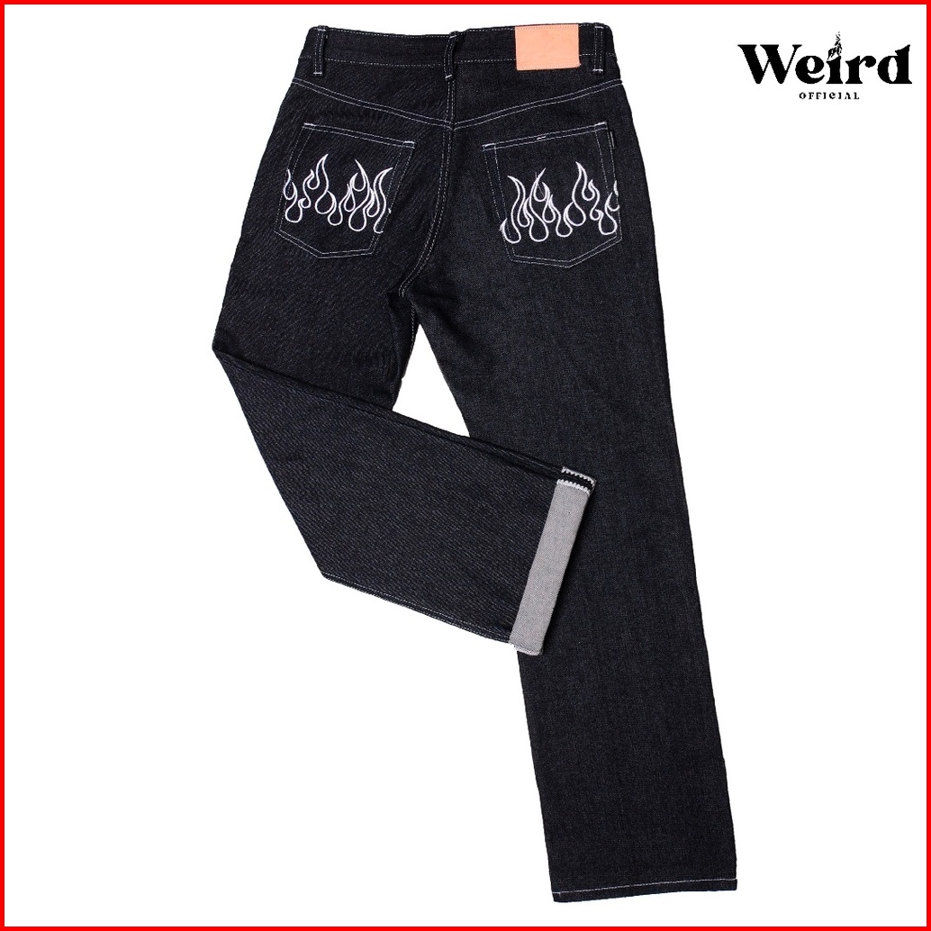 Weird Denim Celana Panjang Jeans Selvedge Shellstitch 15 Oz Accent Black Indigo Flame Art
