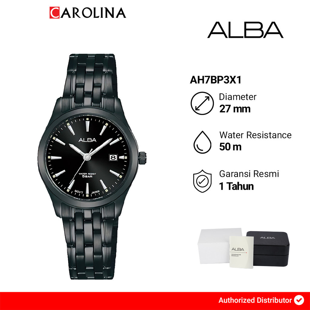 12.12 Jam Tangan Wanita ALBA AH7BP3X1 Black Dial Black Stainless Steel Strap