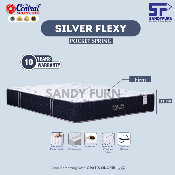 CENTRAL Spring Bed - Silver Flexy Pocket Spring - Semua Ukuran - Kasur+Sandaran