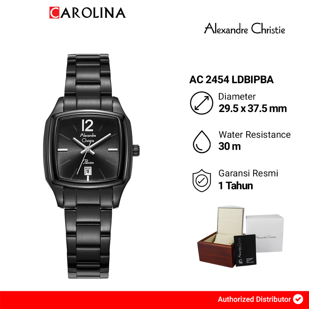 12.12 Jam Tangan Wanita Alexandre Christie Passion AC 2454 LDBIPBA Black Dial Black Stainless Steel Strap