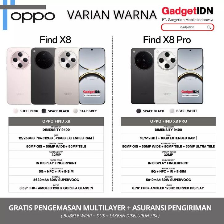Find X8 Pro 5G 16/512GB ( +16GB Extended RAM ) Garansi Resmi Terlaris