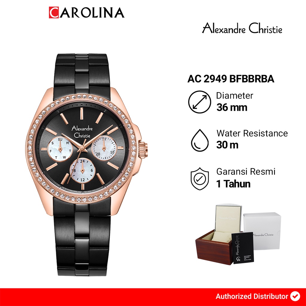 12.12 Jam Tangan Wanita Alexandre Christie AC 2949 BFBBRBA Black Dial Black Stainless Steel Strap