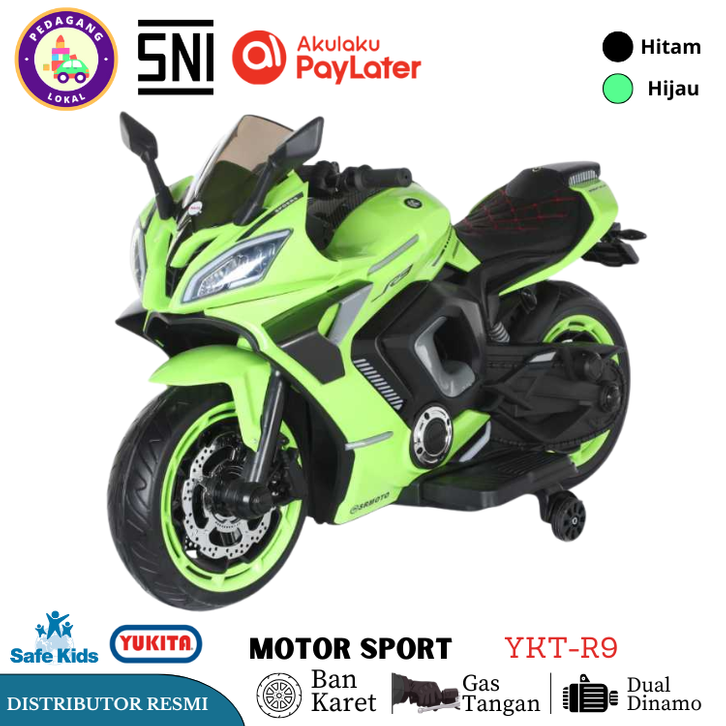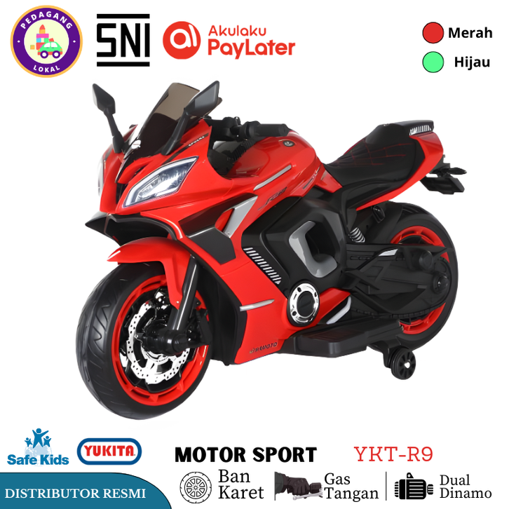 Mainan Anak Laki Laki Motor Aki Anak Yukita 3188 R9 Sport Mainan Ban Karet + Jok Kulit