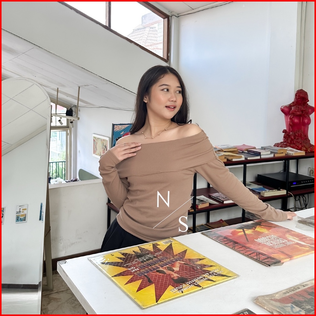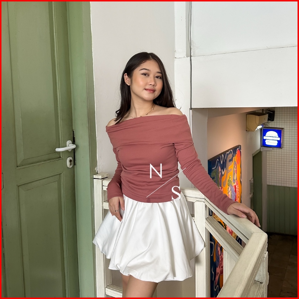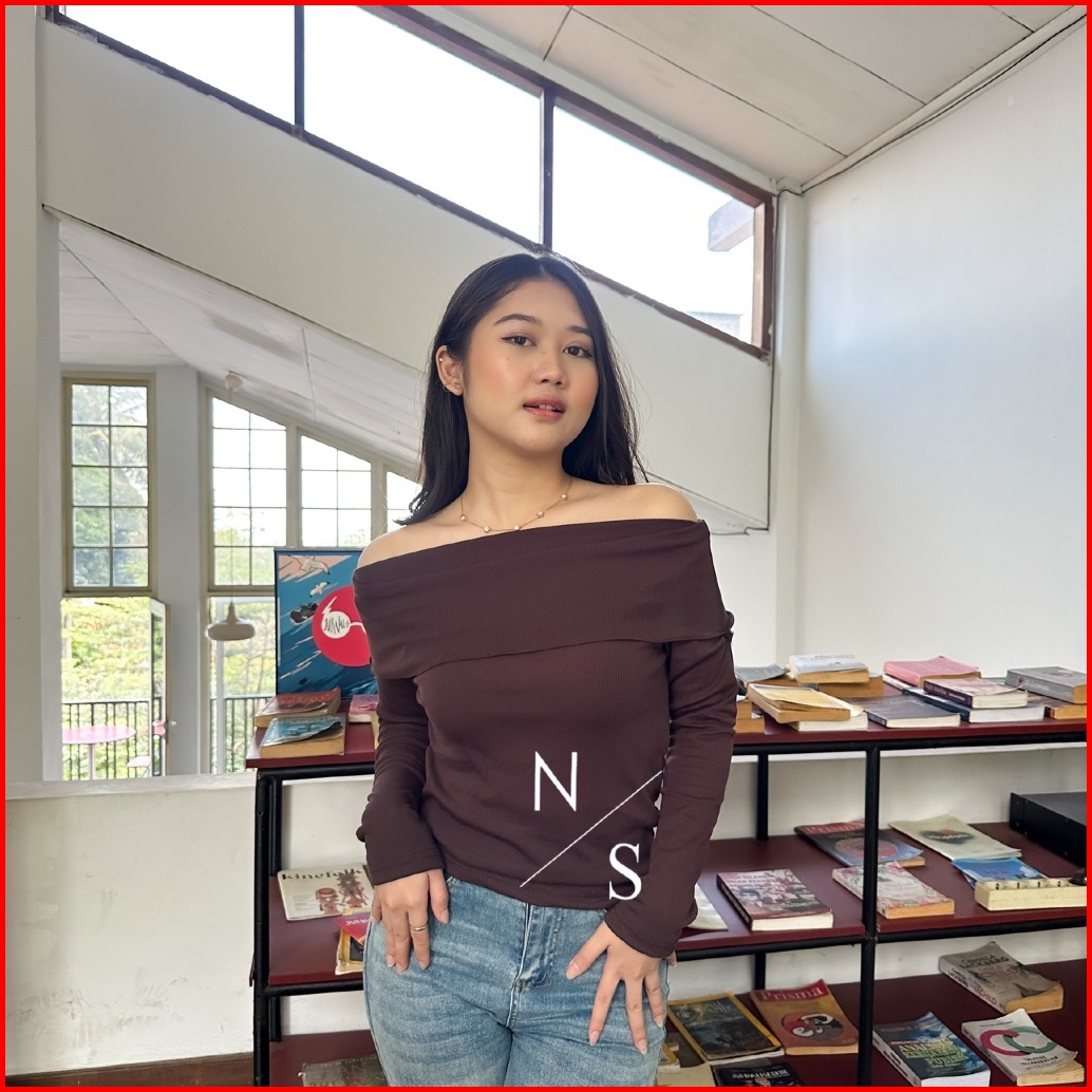 Alisa Top Atasan Knit Wanita Lengan Panjang Off Shoulder Basic Korean Long Sleeve By Nabilazestudio