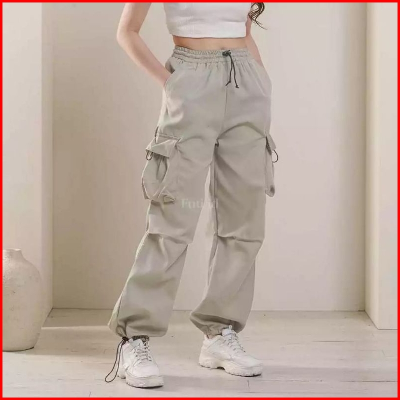 Cargo Pants Wanita Highwaist Loose Korean Style Jumbo - Celana Kargo Pria Wanita Kekinian