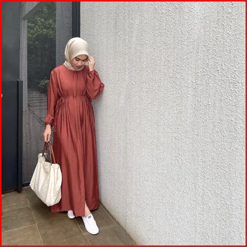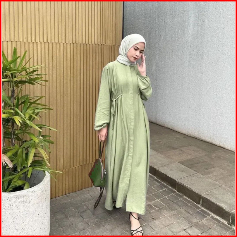 Hazzel Dress Polo Linen Dress Kekinian Gamis Busui Friendly