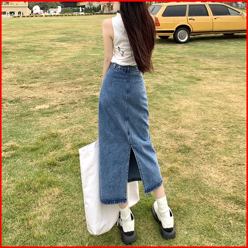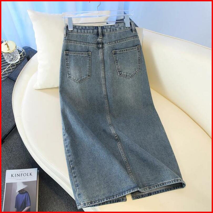 Jumbo Size Rok Jeans Skirt Korean Style Rok Belah Belakang Bigsize Button High Waist 2024 Terabaru Rok A-line Panjang