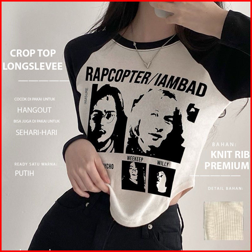 Crop Top Longsleeve Rapcopter Crop Top Longsleeve Wanita Ld 88 P 52 Cm