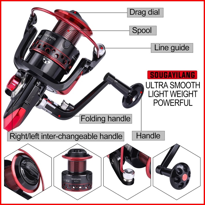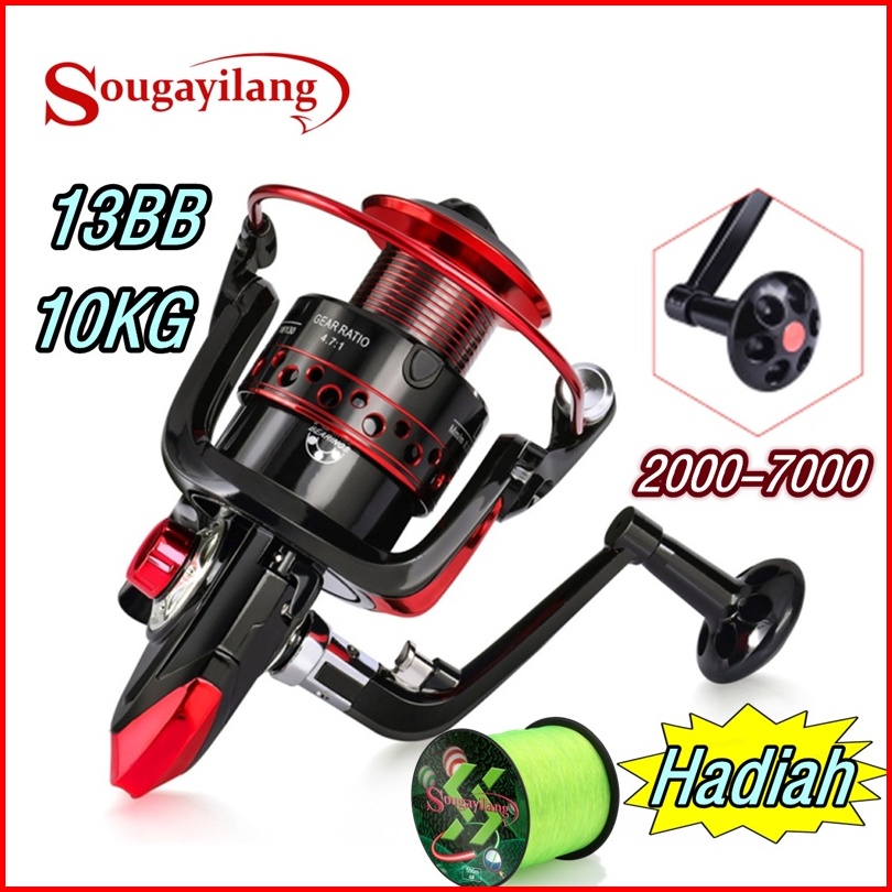 Sougayilang Reel Pancing 2000-7000 13bb Spinning Bahan Aluminium Spool Gagang Katrol Pancing Rill Pancing Reel Daido