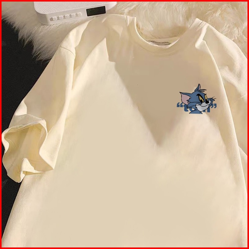 Po Floret Cream Kaos Oversize Lengan Tom And Jerry Cartoon Katun Murni Korean Style Wanita Baju Atasan Wanita Terbaru