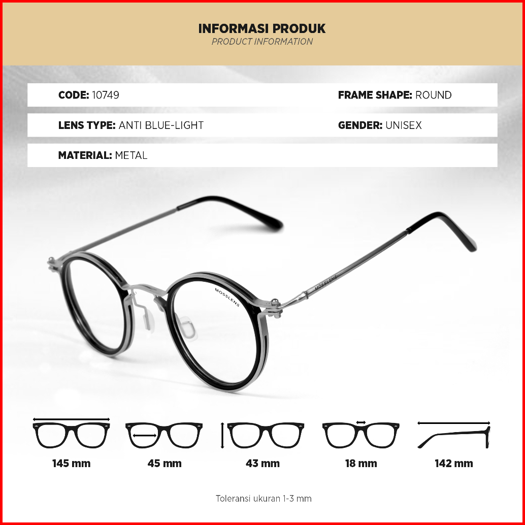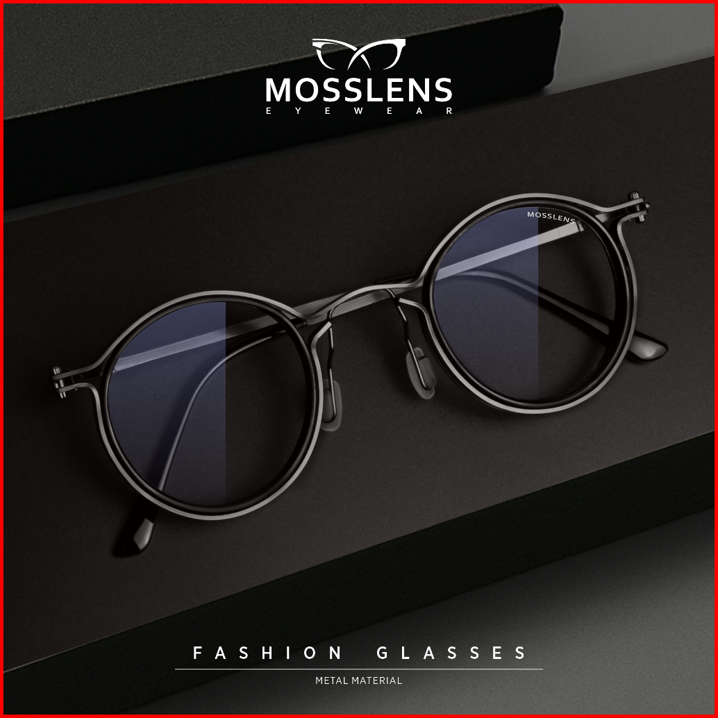 Mosslens Kacamata Bulat Retro Pria Wanita Lensa Bisa Minus Anti Radiasi Photocromic Blueray 10749