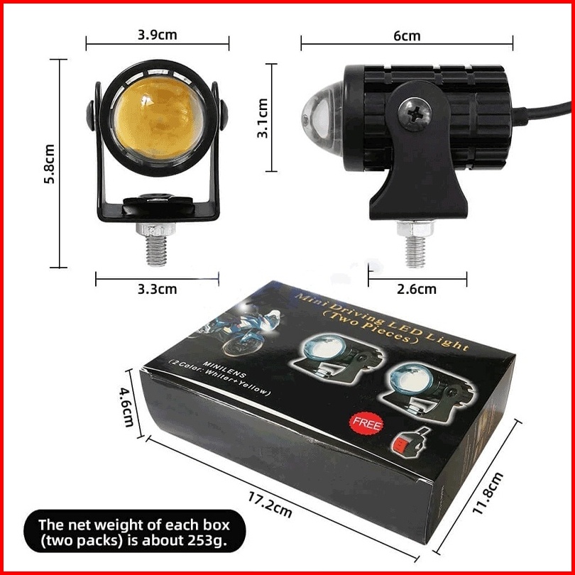 2 Lampu Saklar Motorcycle Lights Lampu Tembak Laser 2 Warna High Low Putih Kuning Waterproof Lampu Led Motor Lampu Dekat