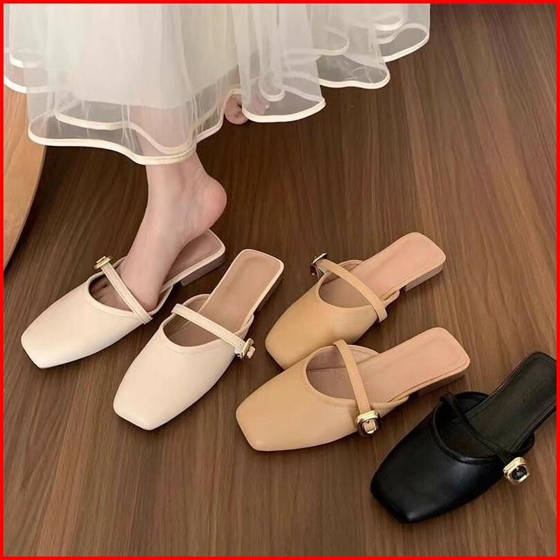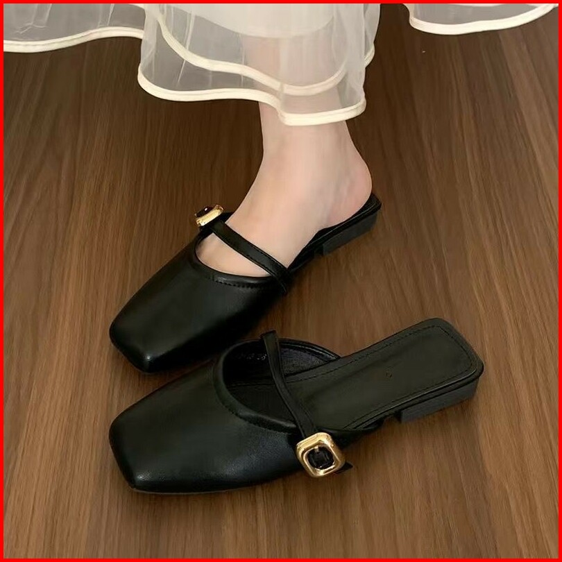 Lvr Free Box Sepatu Flatshoes Wanita Motif Kait Fashion Sepatu Slip On Kerja Tg2078