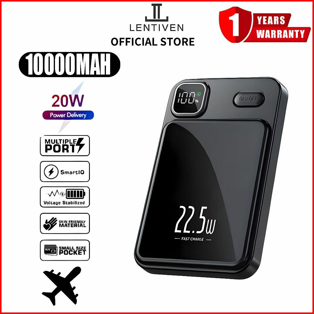 Lentiven Powerbank 10000mah Fast Charging Wireless Charger Mini Magnetic Magsafe 20w Type C