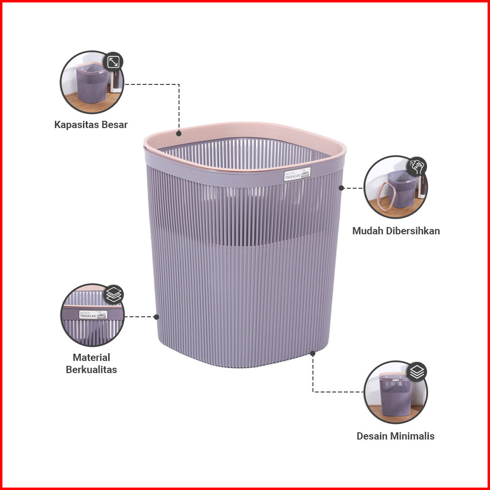 Informa 9 Ltr Flo Tempat Sampah Tanpa Tutup - Ungu Pink Tong Sampah Wadah Pembuangan Alat Kebersihan Trash Bin