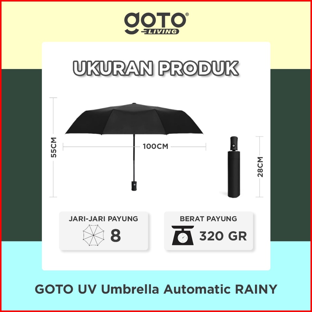 Goto Rainy Payung Umbrella Lipat Besar Polos Anti Uv Otomatis