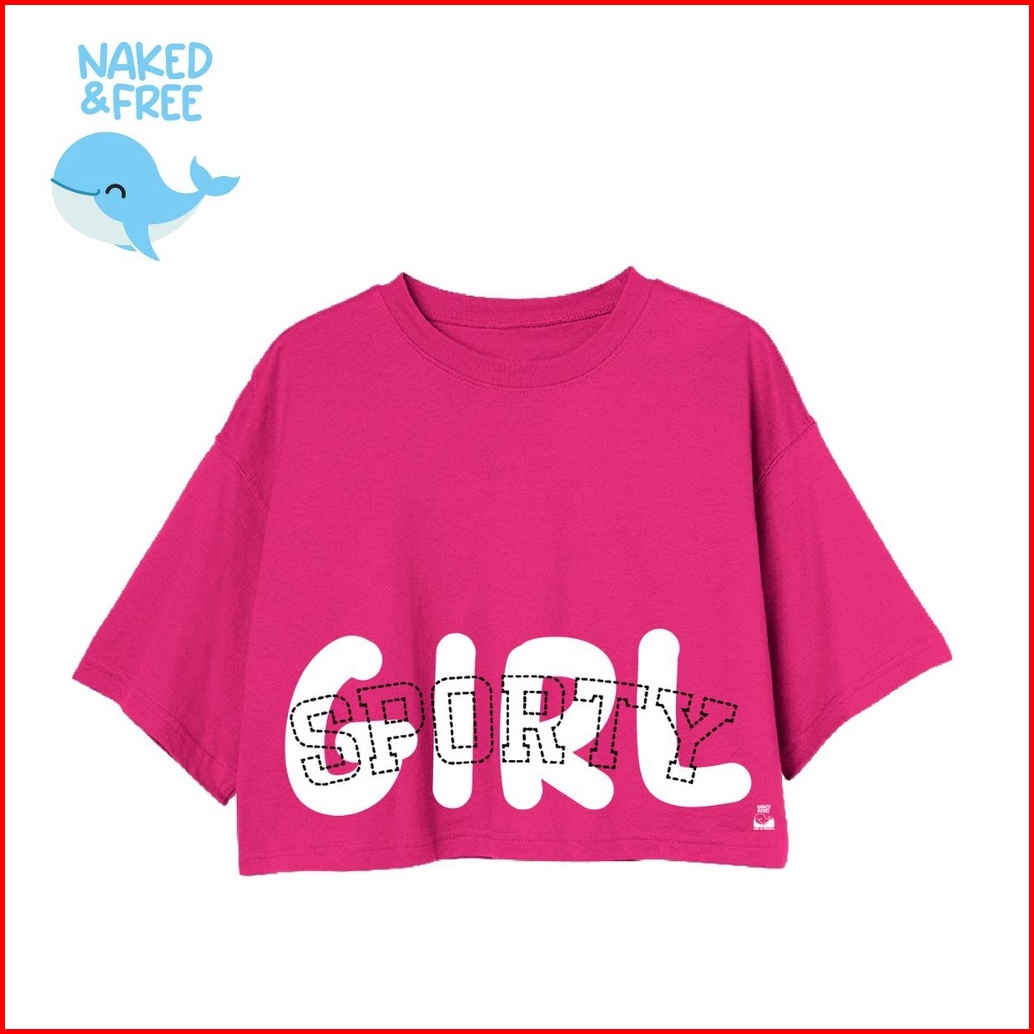Naked Free Croptop Anak Typography Girl Sporty Series Untuk Usia 4-8 Tahun Bahan Katun Combed 30s Premium
