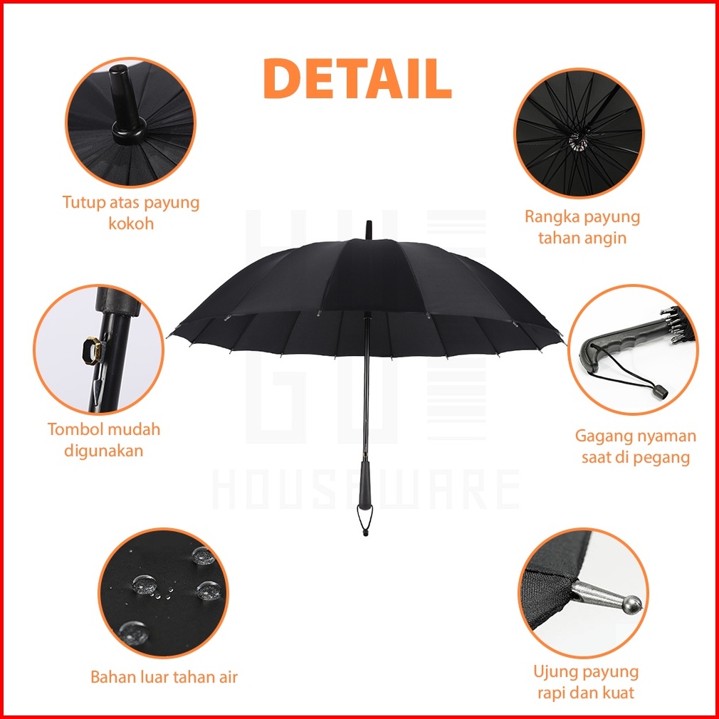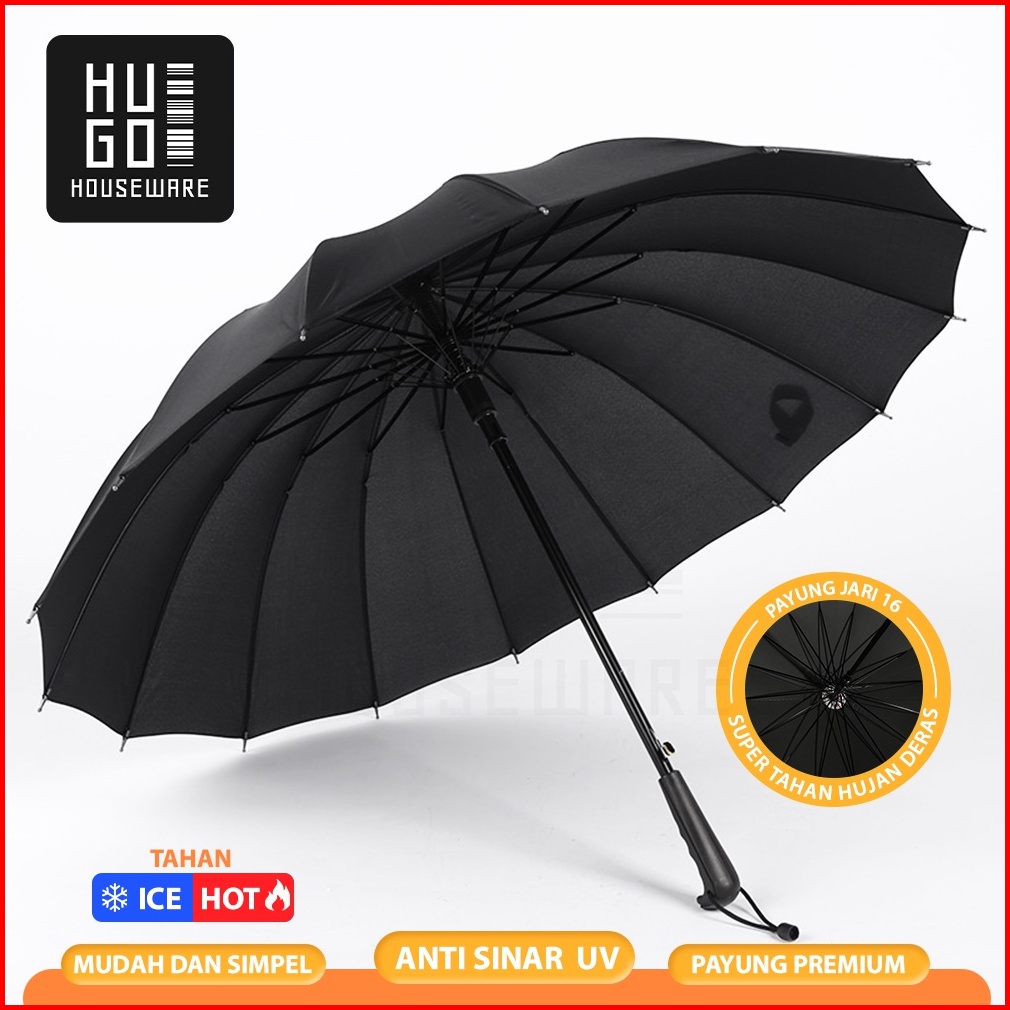 Hugo Payung Golf Besar Payung Polos Jumbo 16 Jari Premium Rangka Kuat Kokoh