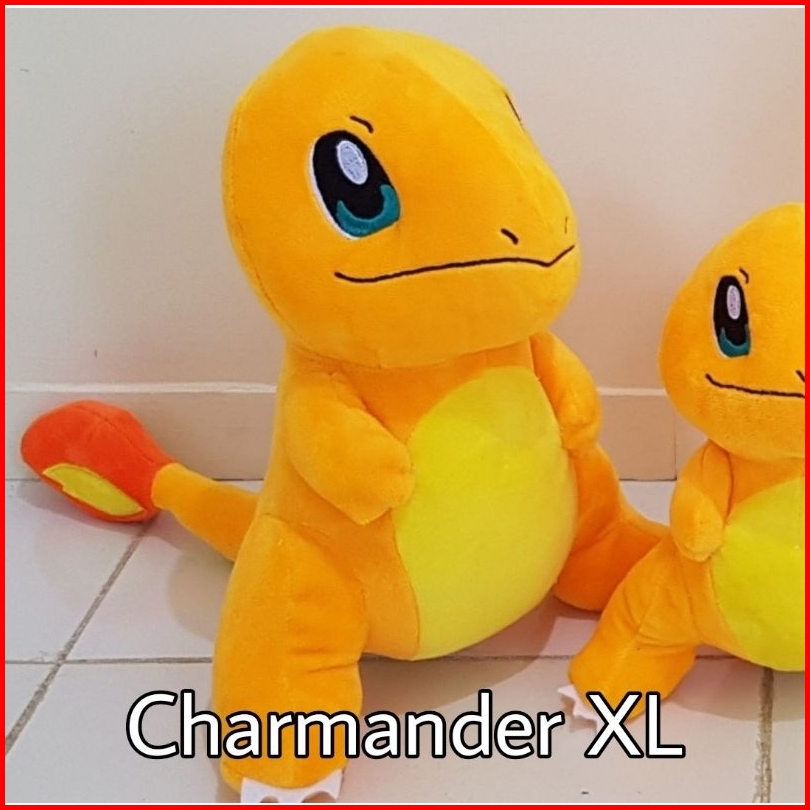 Pikachu L, Charmander L, Bulbasaur L, Squirtle L, Pikachu XL, Charmander XL, Bulbasaur XL, Squirtle XL, Evee L (14"), Snorlax L (14"), Charizard L (14"), Gengar L (14"), Psy Duck L