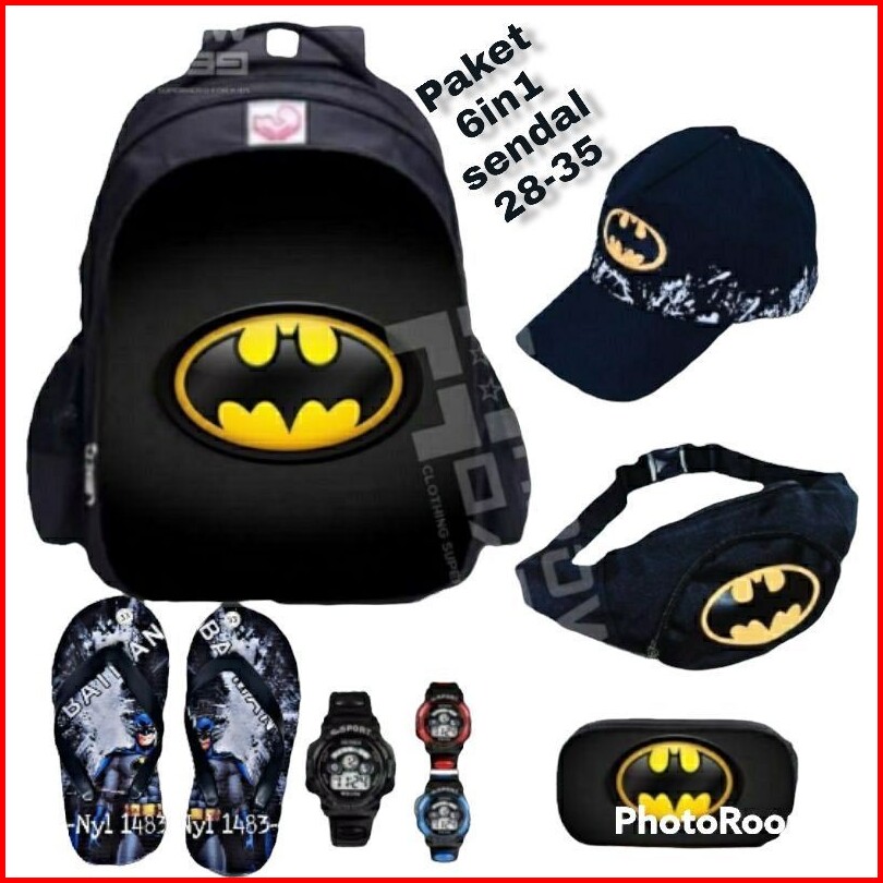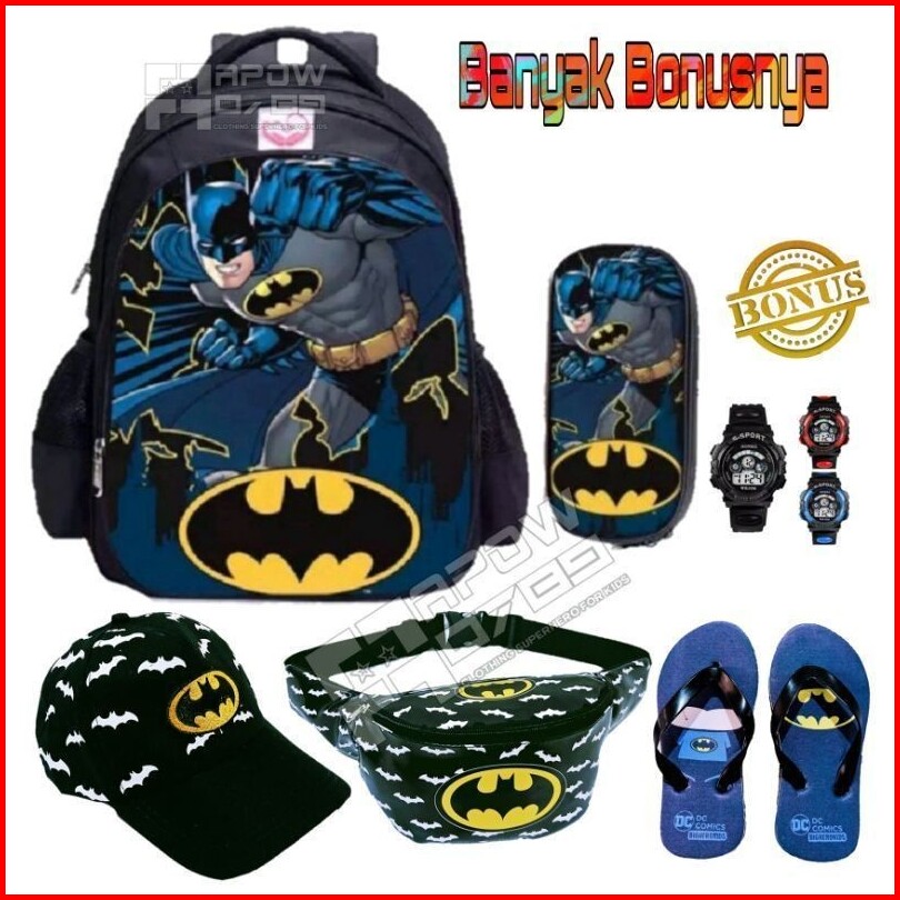 Banyak Bonusnya Paket 6in1 Ransel Anak Karakter Batman Tas Ransel Anak Sekolah Laki-laki