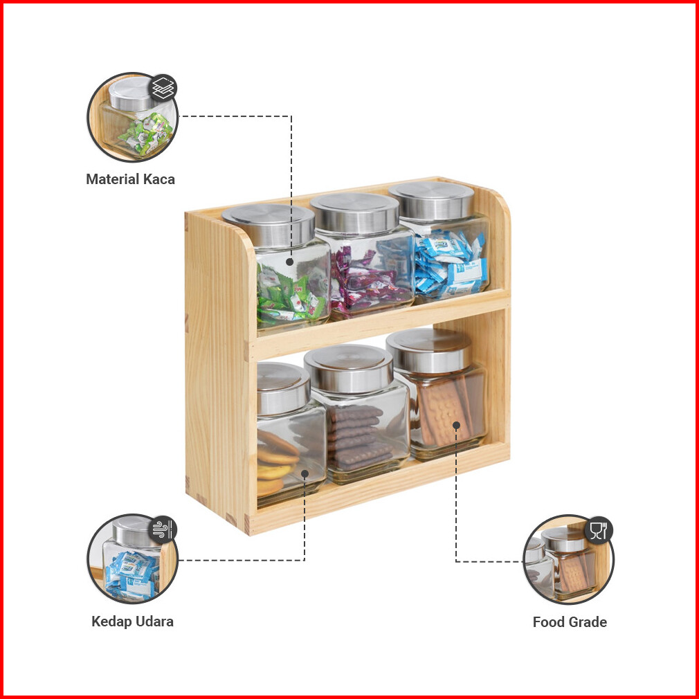 Informa 500 Ml Set 6 Pcs Caston Stoples Kaca Jar Tempat Simpan Snack Dan Permen Setoples Toples Serbaguna Perlengkapan D